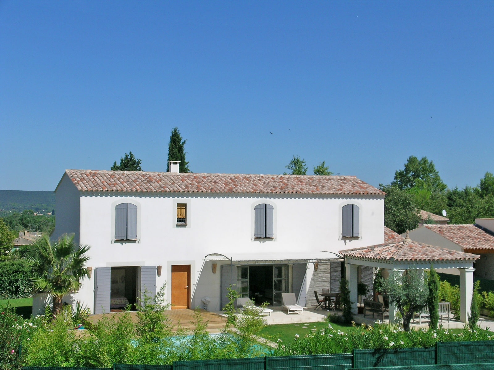 Les espaces extérieurs arborés et la piscine apportent fraîcheur et quiétude, comme une respiration au cœur de la nature.