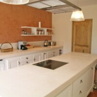 Des voûtes en pierre à l’ancienne cuverie réinventée en salon lumineux, chaque détail rend hommage à l’histoire du lieu, tout en célébrant une modernité sobre et assumée. Les matériaux nobles – bois brut, pierre naturelle, ferronnerie artisanale – s’accordent à une architecture pensée pour le bien-être et la lumière.